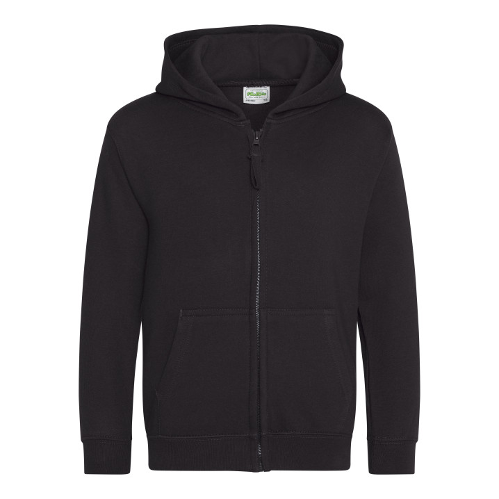 Durchgehender Reißverschluss. Unsichtbarer Reißverschluss. Gefütterte Kapuze. 2 Fronttaschen. Rippenbündchen an Ärmel und Saum. Ablösbares Etikett. Innen gebürstet.
