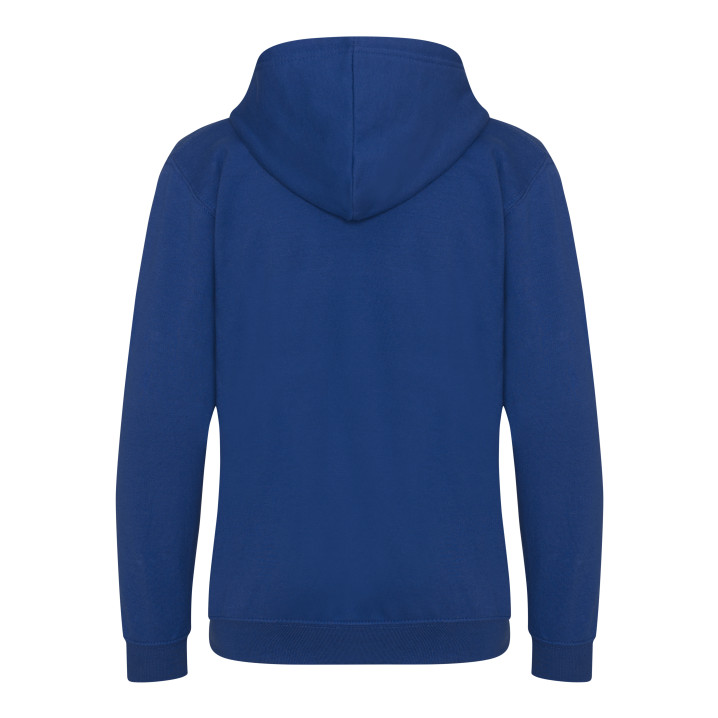 Durchgehender Reißverschluss. Unsichtbarer Reißverschluss. Gefütterte Kapuze. 2 Fronttaschen. Rippenbündchen an Ärmel und Saum. Ablösbares Etikett. Innen gebürstet.