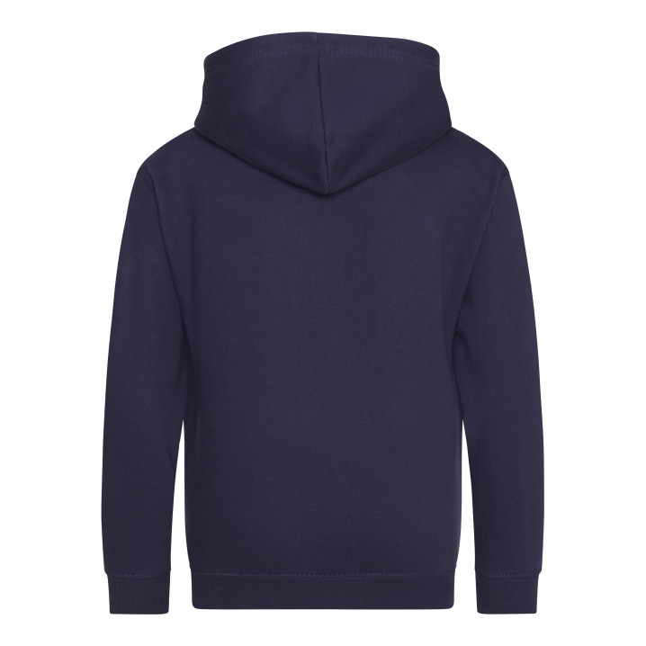 Durchgehender Reißverschluss. Unsichtbarer Reißverschluss. Gefütterte Kapuze. 2 Fronttaschen. Rippenbündchen an Ärmel und Saum. Ablösbares Etikett. Innen gebürstet.