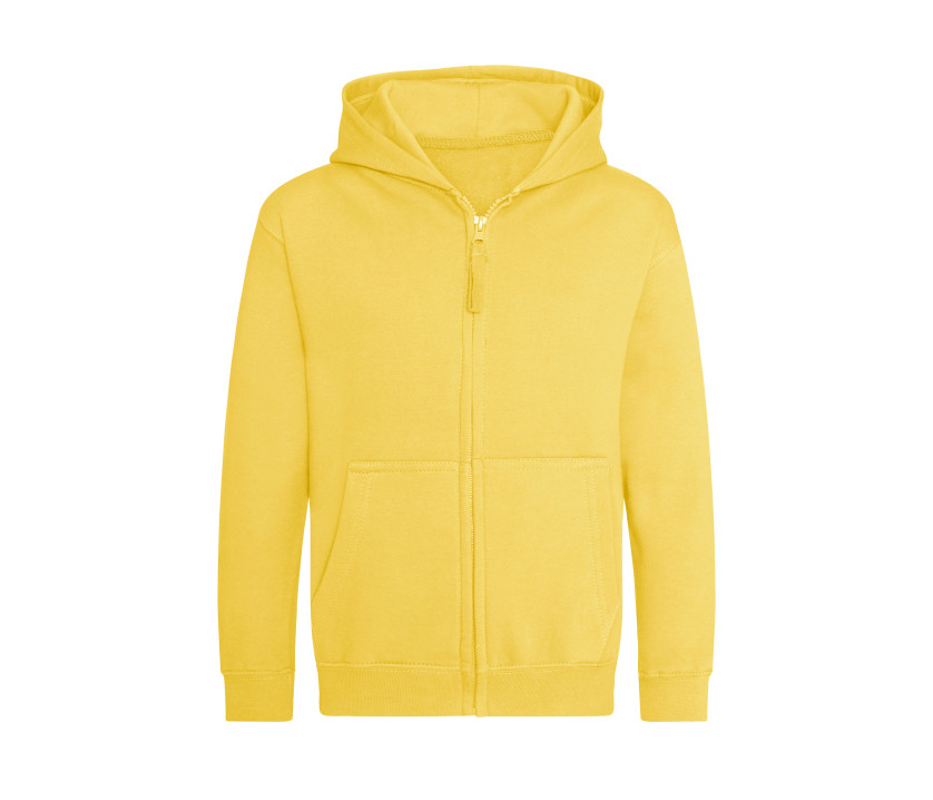 Durchgehender Reißverschluss. Unsichtbarer Reißverschluss. Gefütterte Kapuze. 2 Fronttaschen. Rippenbündchen an Ärmel und Saum. Ablösbares Etikett. Innen gebürstet.
