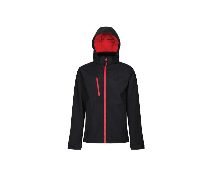 3-lagige Softshell-Jacke (wasserdicht, winddicht, atmungsaktiv). Wasserabweisend. Kapuze mit Zugband. 2 Fronttaschen mit Reißverschluss. Brusttasche. Verstellbare Ärmelabschlüsse. Atmungsaktiv (10000gr). Wasserdicht 5.000 mm.