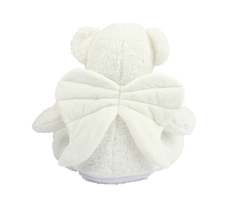 Beschriftung am Bauch des Plüschtiers möglich. Reißverschlussöffnung am Rücken. Füllmaterial kann entfernt werden.