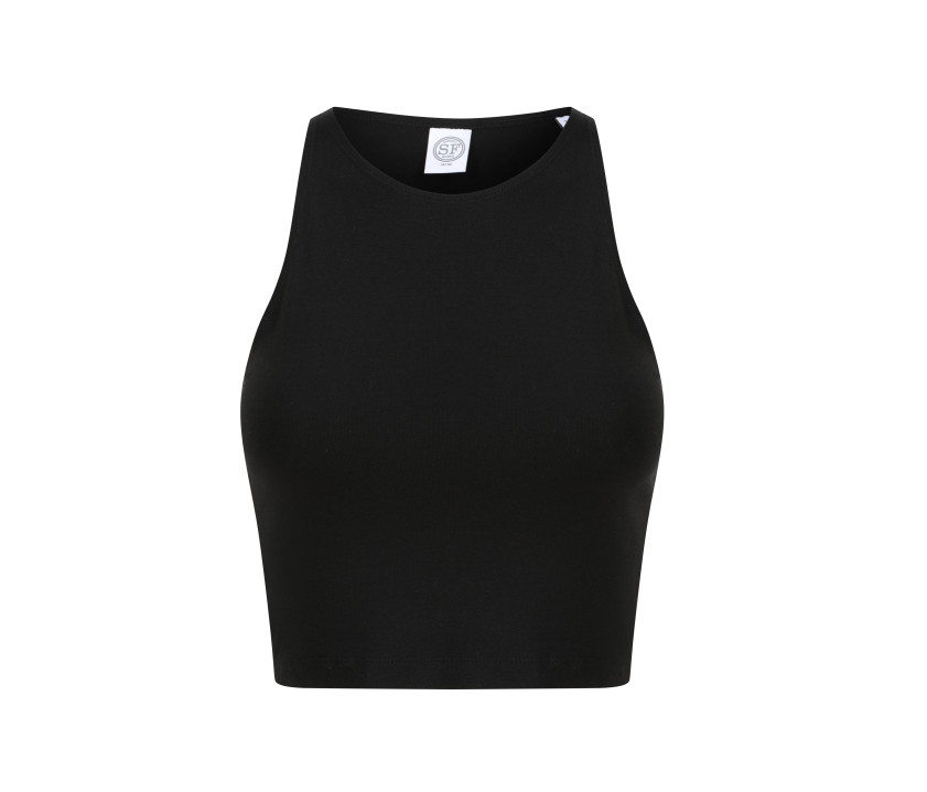 Kurzes T-Shirt. Rücken und Vorderseite im Schwimmerstil. Doppelnähte an Kragen, Armausschnitt und Bund. Ablösbares Etikett.