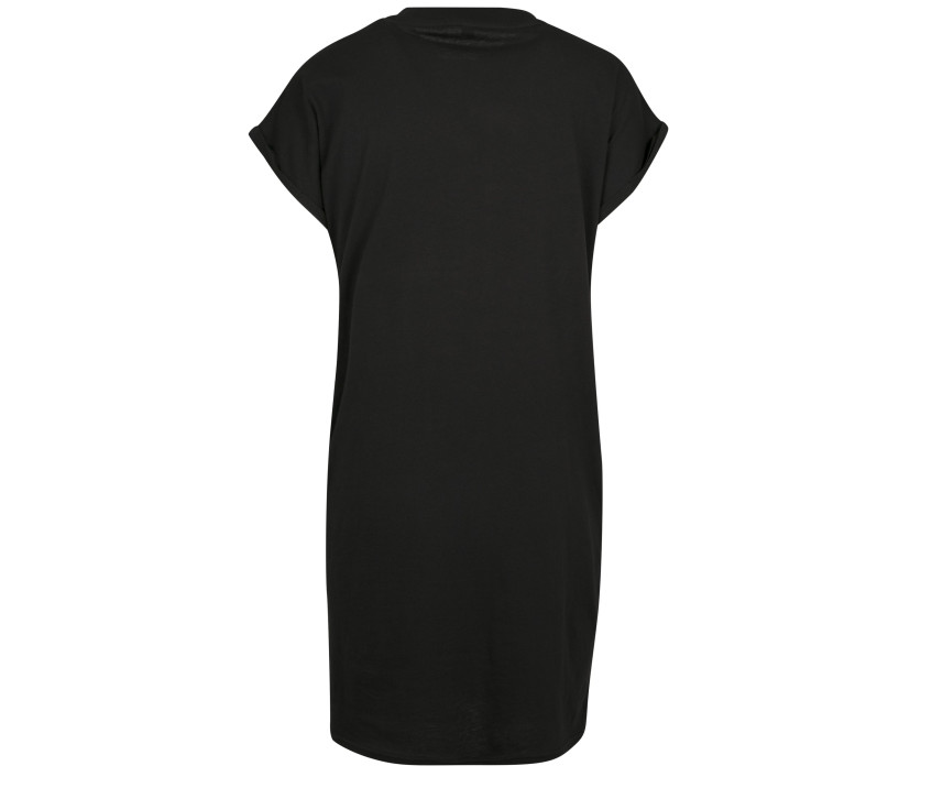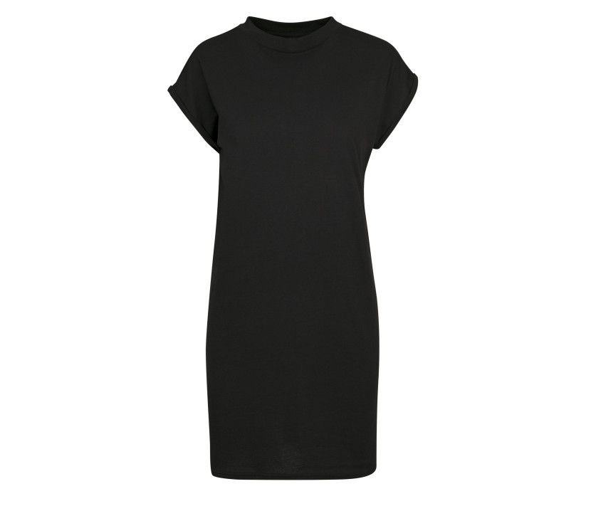 Perfekte Mischung zwischen T-Shirt und Kleid. Breit geschnittene Schultern. Mini-Stehkragen. Hochgekrempelte Ärmel.