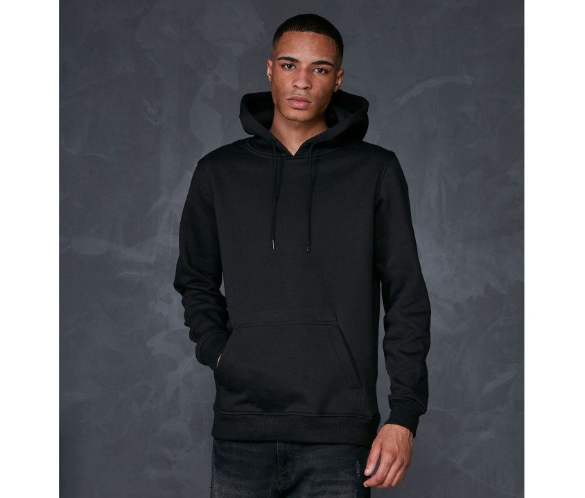 Kapuzensweatshirt - Rundes Zugband in gleicher Farbe. Raglanärmel. Breite Rippenbündchen an Ärmeln und Bund. Innen angeraut.