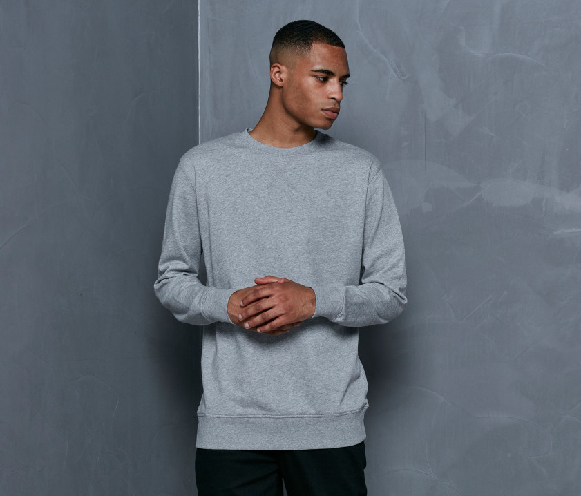 - Runder Halsausschnitt. Gerade Ärmel. Rippenbündchen an Kragen, Bund und Ärmeln. Innen angeraut.