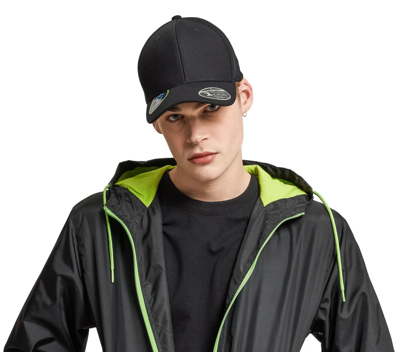 6 Panels. Wasserabweisend. Leitet die Feuchtigkeit ab. Strukturierte Kappe. Unterseite des Schilds in gleicher Farbe. Genähte Ösen. Gebogenes Schild. Verschluss mit Schnalle und Klettband. 8 Nähte am Schild. Geeignet für Kopfumfänge zwischen 52 und 63 cm.