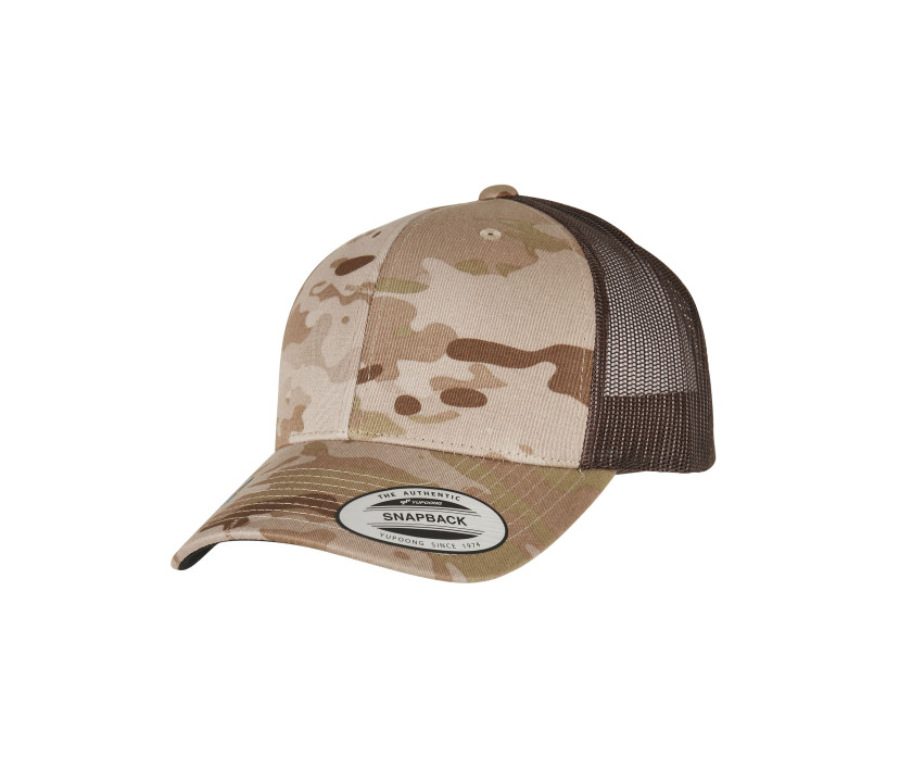 Trucker-Kappe im Tarn-Stil - 6 Panels. Netzgewebe hinten und an der Seite. Verschluss mit PVC-Band.