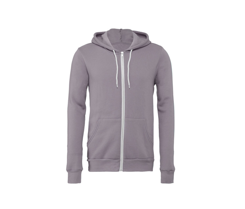 Seitliche Nähte. Unisex-Modell. Durchgehender weißer Reißverschluss. Rippenbündchen an Ärmelabschlüssen und Bund. Weiße Kordeln. Vorgewaschen. Ablösbares Etikett.