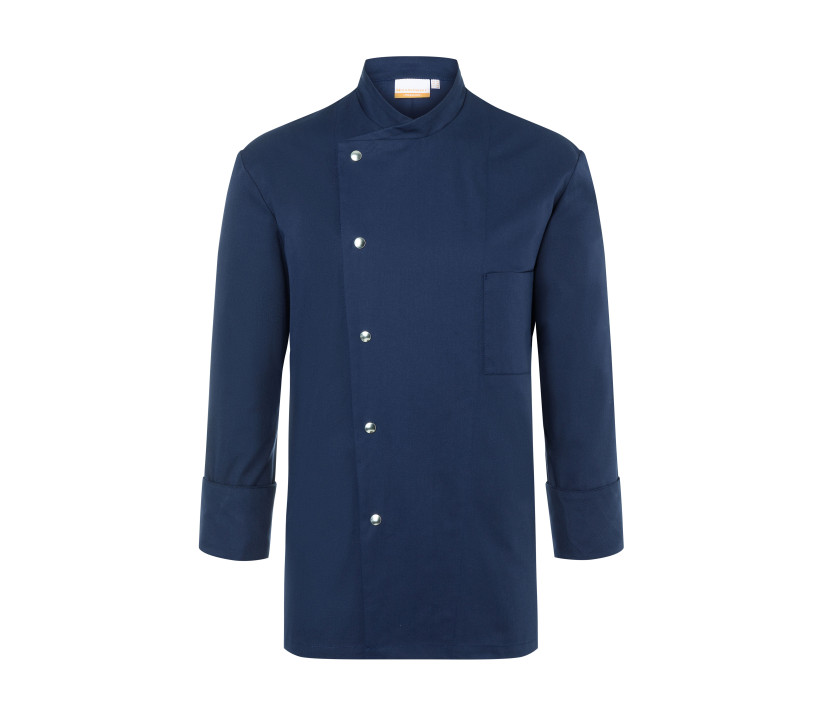 Klassische Passform. Aufgesetzte Brusttasche mit Stiftfach. 5 Druckknöpfe. Vorgeschrumpft, waschecht, pflegeleicht. Industriewäschetauglich.