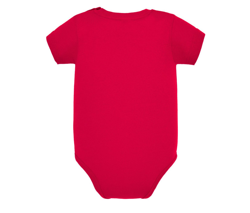 Druckknöpfe an den Schultern und im Schritt. 1x1 Rippenbündchen am Halsausschnitt. Ablösbares Etikett.