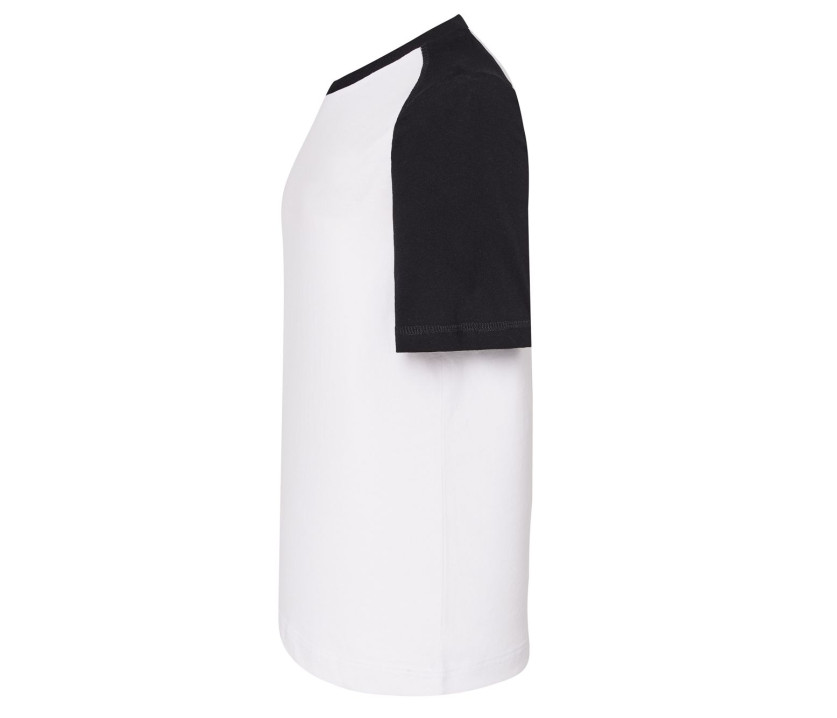 Kragen und Raglanärmel in Kontrastfarben. Seitliche Nähte. Ablösbares Etikett.