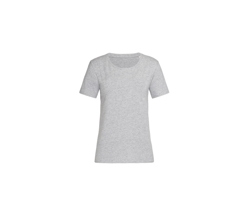 Rundhals-T-Shirt für Damen - Verstärkte Nähte an den Schultern. Schmaler Kragen aus demselben Material. Seitliche Nähte.