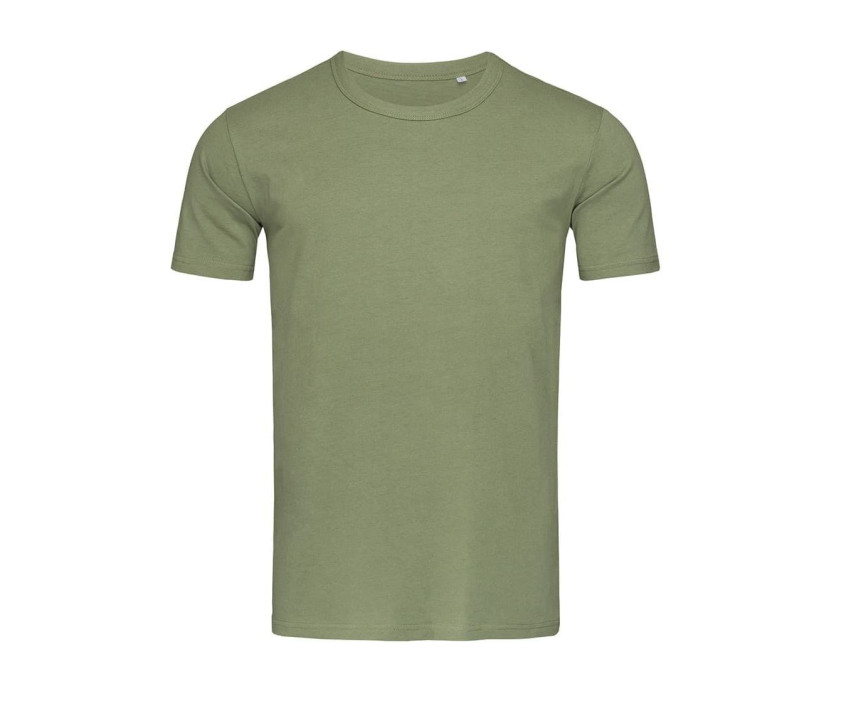 Rundhals-T-Shirt für Herren - Kragen mit Rippenbündchen und Kontraststreifen. Seitliche Nähte.