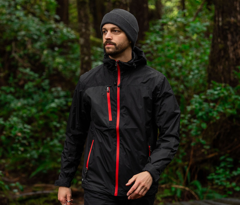 Ultraleicht, wasserdicht und atmungsaktiv. Wetterbeständig. PFC-freie wasserabweisende Ausrüstung. Verschweißte Nähte. Nicht abtrennbare, verstellbare Kapuze. Reißverschlusstaschen. Verstellbare Ärmelabschlüsse. Artikulierte Ärmel. Wassersäule: 5.000 mm. Atmungsaktivität 5.000 g/m². +5°C à +20°C.