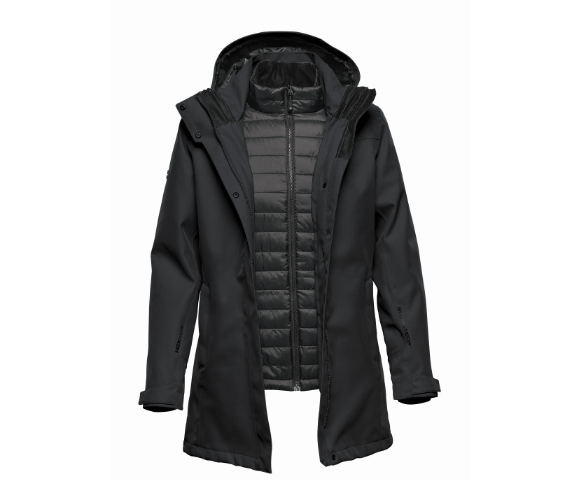 Vollständig verschweißte Nähte. Artikulierte Ellbogen. Mehrfach verstellbare, abnehmbare Kapuze. Ergonomische Zieher. Innentasche. Wassersäule 10.000 mm. Atmungsaktivität 5.000 g/m². -10°C à -30°C.
