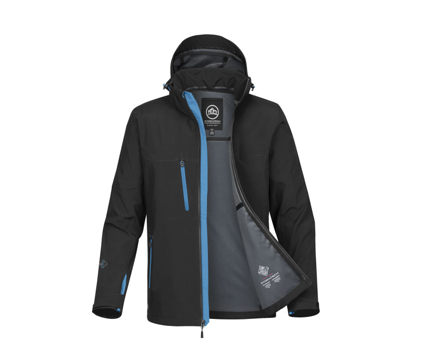 - Verschweißte Nähte. Wasserdichte Reißverschlüsse. Abnehmbare, verstellbare Kapuze mit Zugband.