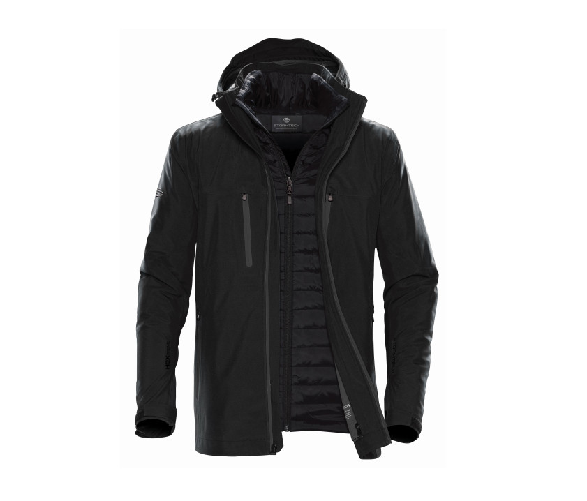 - Vollständig verschweißte Nähte. Artikulierte Ellbogen. Wasserdichte Reißverschlüsse. Abnehmbare, verstellbare Kapuze.