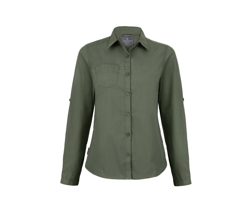 Insektenbissfestes Gewebe. Sonnenschutz (UPF 40). Lässige Passform. Pflegeleicht. 1 Brusttasche.