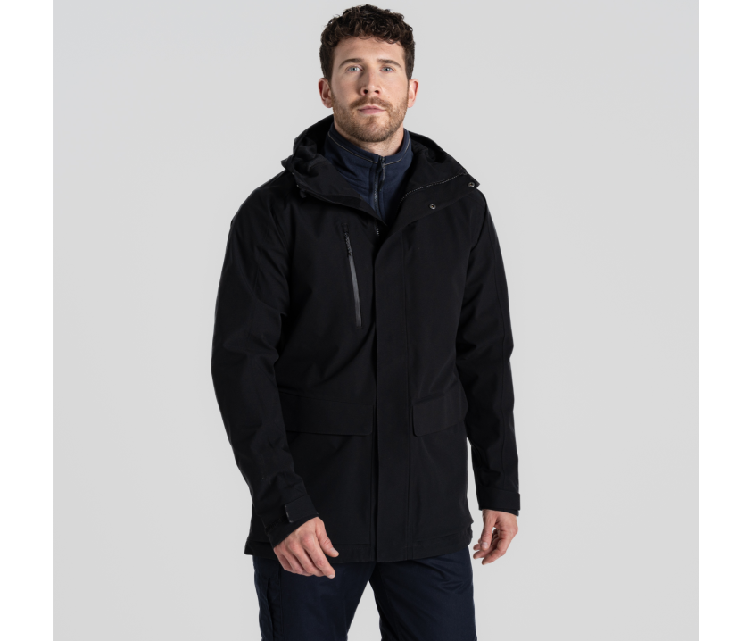 Wasserdichte (10.000 mm) und atmungsaktive (200000 g/24 uur) Jacke. Reißverschluss über die gesamte Länge. 6 Taschen. AQUADRY Membran mit ECO SHIELD Ausstattung.
