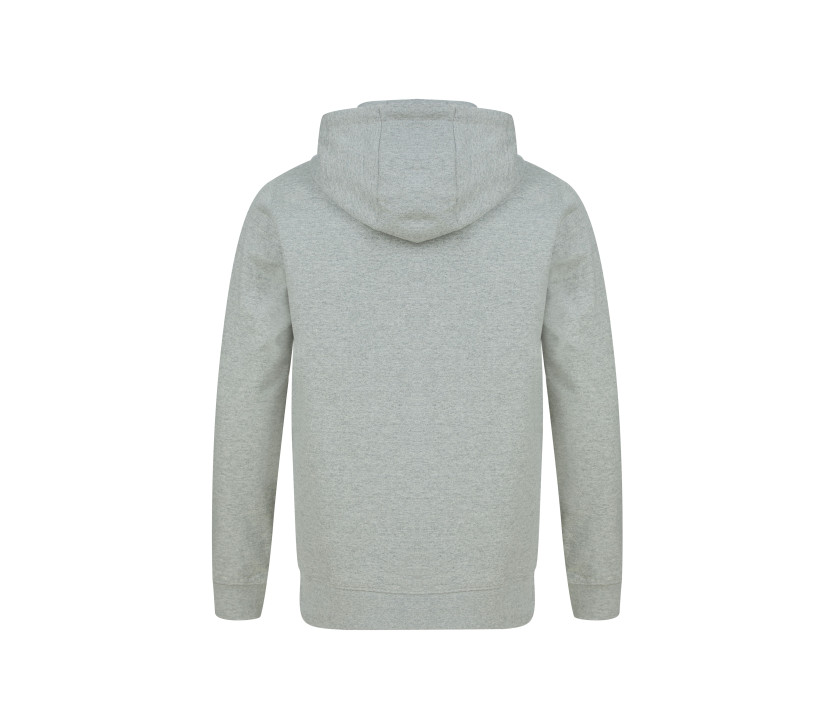 Innen angeraut. Rippenbündchen an Ärmelabschlüssen und Bund. Gerade Ärmel. Kapuze mit Zugband. Ösen und Enden des Zugbands aus recyceltem Metall. Gerippter V-Einsatz am Halsausschnitt.