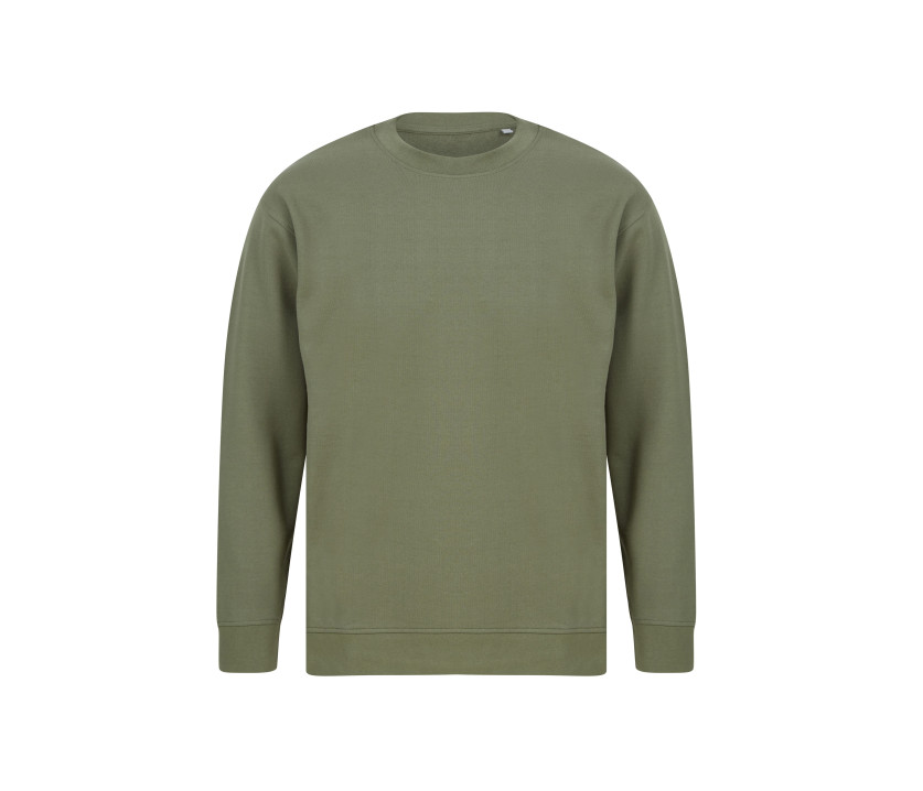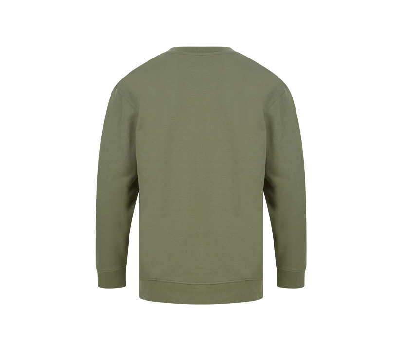 Unisex-Sweatshirt mit lässiger Passform. Gerade Ärmel. Hängende Schultern. Sweatshirt mit längerem Rückenteil. Rippenbündchen am Rundhals und an den Ärmeln. Farblich abgestimmte Steppnähte. Ablösbares Etikett. Nackenband am Kragen.
