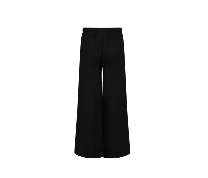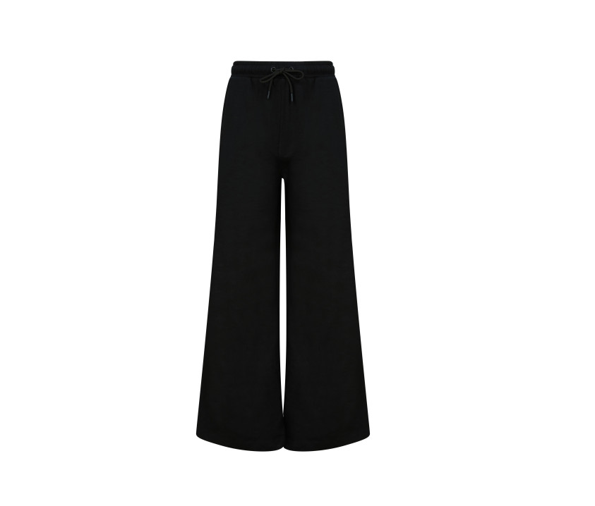 Damen-Jogginghose mit weiten Beinen. Elastischer Bund mit Zugkordel. Innen angeraut. Seitentaschen. Farblich abgestimmte Steppnähte. Ablösbares Etikett.