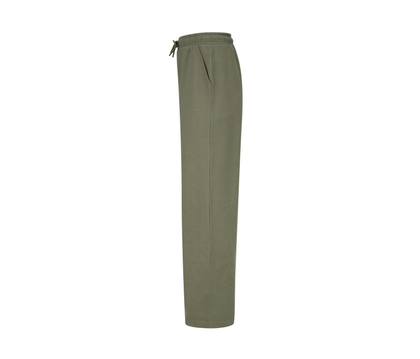 Damen-Jogginghose mit weiten Beinen. Elastischer Bund mit Zugkordel. Innen angeraut. Seitentaschen. Farblich abgestimmte Steppnähte. Ablösbares Etikett.