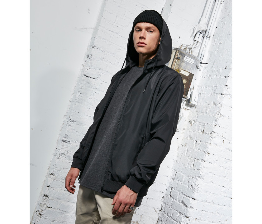 Leichte Windjacke. Teilweise aus recycelten Fasern hergestellt. Klassische Passform. Innenmaterial atmungsaktives Mesh. Rippenbündchen an Bund und Ärmeln. Durchgehender Reißverschluss. Verstellbare Kapuze.