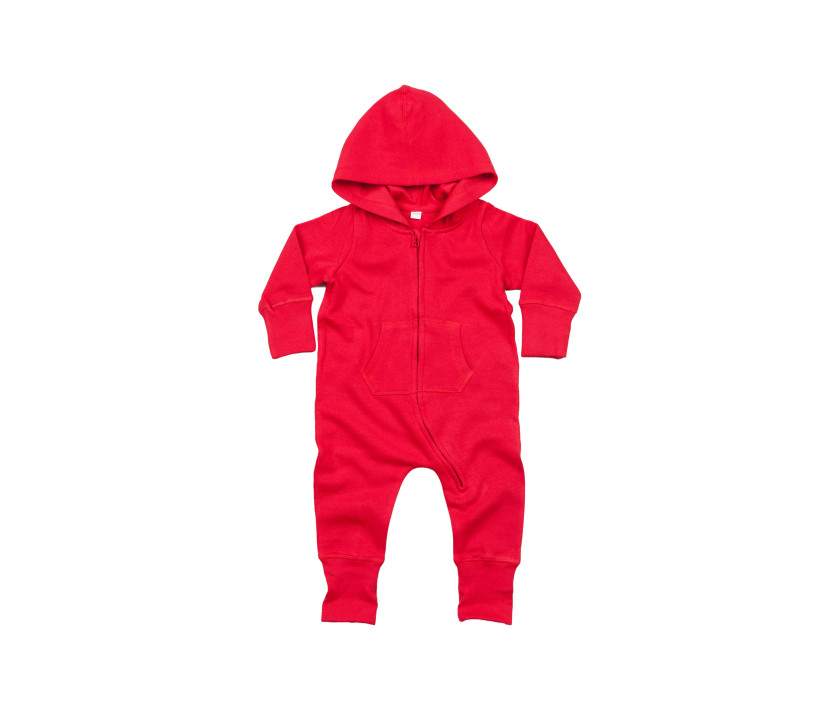 Innen angeraut. Kapuze nicht gefüttert. Kängurutaschen. Durchgehender Reißverschluss. Nackenband. Extra lange Abschlüsse an Ärmeln und Füßen mit Rippenbündchen. Ablösbares Etikett.