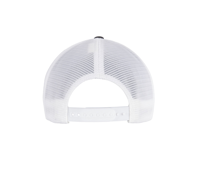 6 Panels. Gebogenes Schild. Rücken- und Seitenpaneele aus Mesh. Verschluss mit PVC-Band. 8 Nähte am Schild. Strukturierte Kappe. Unterseite des Schilds in Silber. Geeignet für Kopfumfänge zwischen 52 und 63 cm.