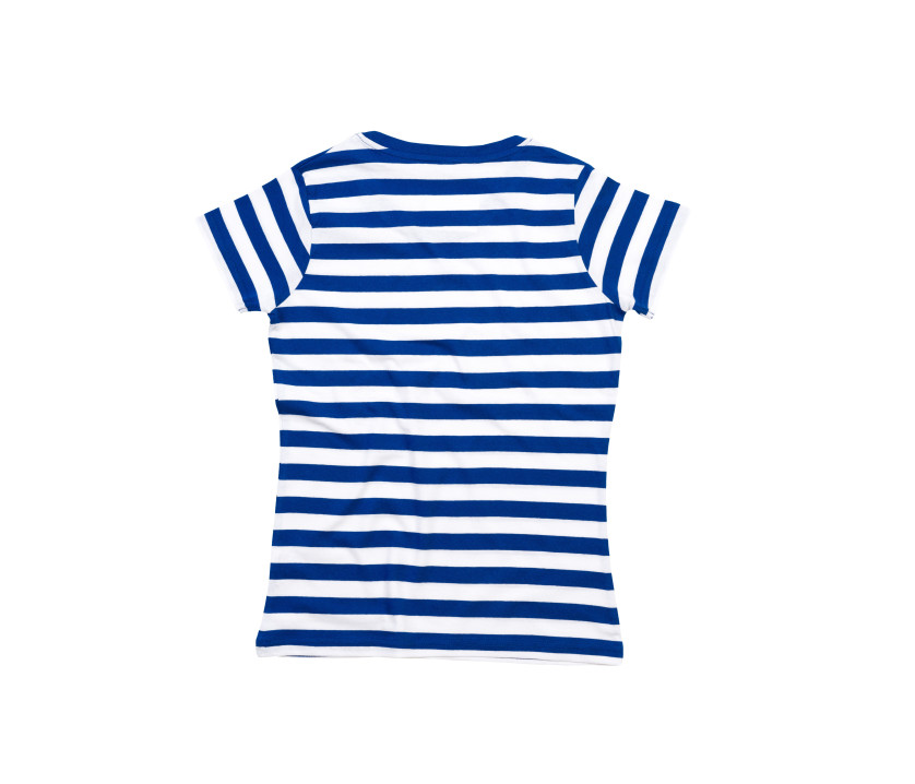Sehr weiche Oberfläche. 2 cm breite Streifen. Schmaler Kragen mit Rippenbündchen. Verstärktes Nackenband. Neutrales Etikett.