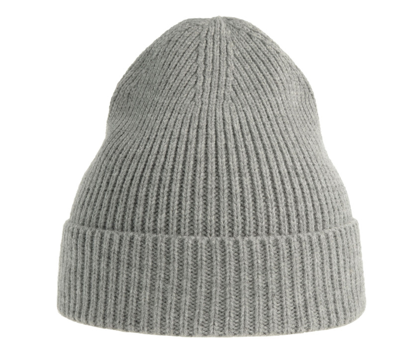 Strickmütze, feines Gewebe 1x1. Mit Klappe. Kopfumfang: 58cm.