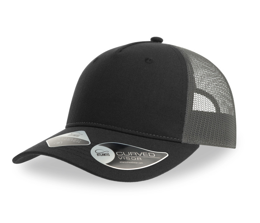 Recyceltes Polyester-Netz. Verschluss mit Band. Leicht und atmungsaktiv. Kopfumfang: 58cm. Schirm mit Kunststoffkernstruktur gefertigt.