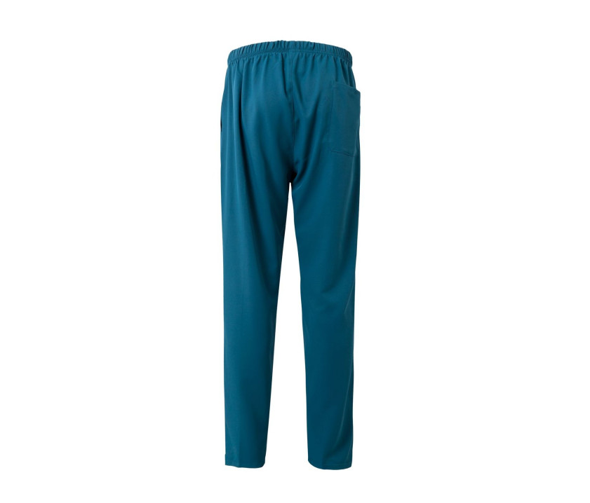 Elastischer Gürtel, mit Kordelzug verstellbar. Wasserabweisendes Gewebe mit antibakterieller Behandlung. 3 Taschen (2 schräge Eingrifftaschen, 1 aufgesetzte Gesäßtasche).