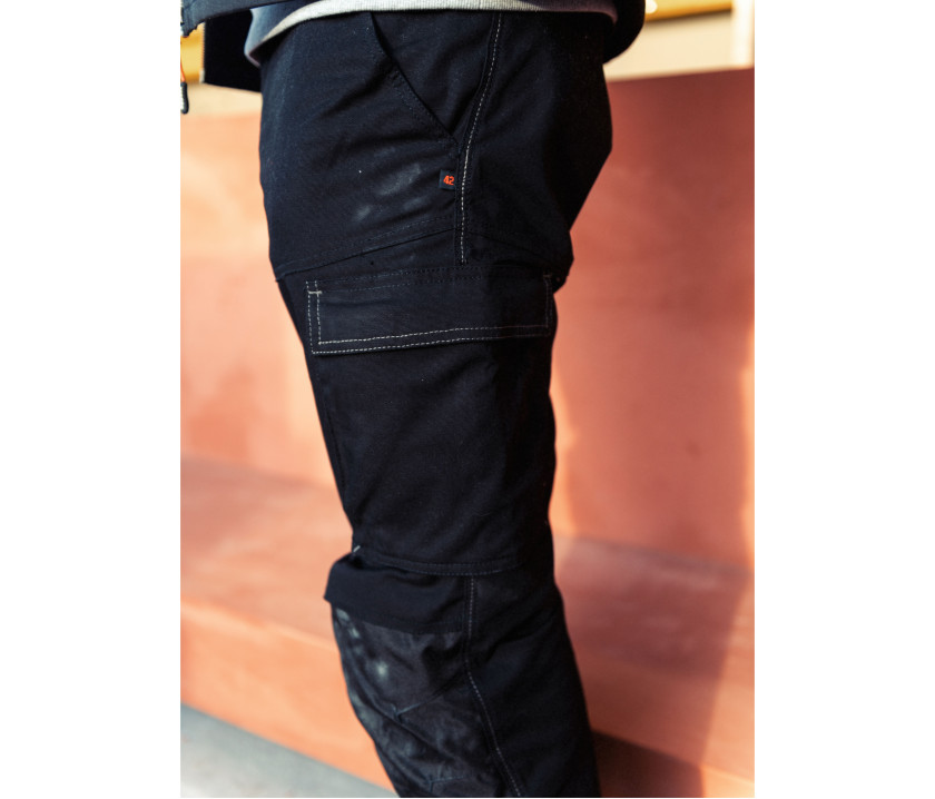 Hose mit mehreren Taschen - Multitaschenhose, in beide Richtungen dehnbar. 2 Seitentaschen, Handy-Tasche in der Oberschenkeltasche, 2 Oberschenkeltaschen, Zollstocktasche, Stifttasche, 2 Gesäßtaschen, Taschen auf Kniehöhe. Wasserabweisende Oberflächenbeschichtung.