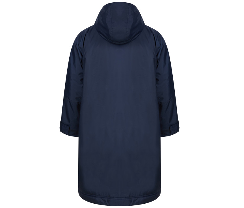 Lange, wasserfeste Jacke mit Sherpa-Fleecefutter und dreiteiliger Kapuze. Zentraler Reißverschluss mit doppeltem Schieber. Reißverschlusstaschen mit Fleecefutter. Innentasche mit Reißverschluss und wasserdichtem Futter. Zugang mit Reißverschluss für Personalisierung. Ärmelbündchen mit verstellbarer Länge. Schlitze an den Seiten.