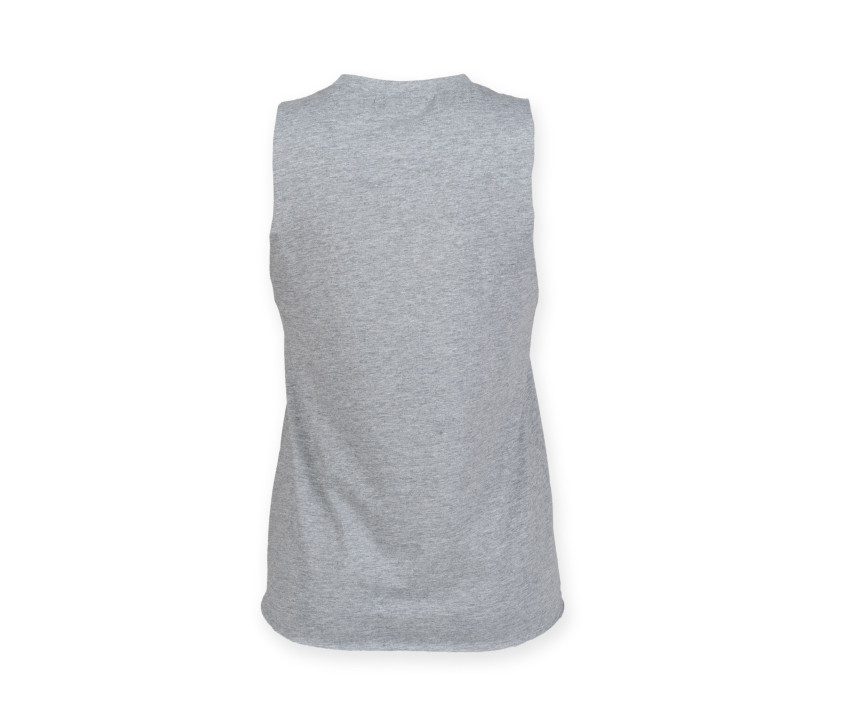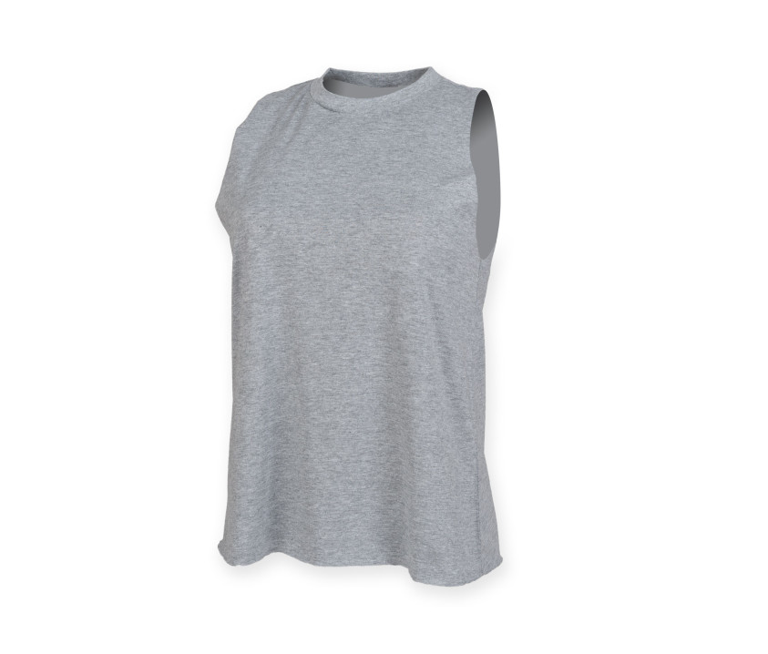 Rundhalsausschnitt mit Stretchkante an der Seite. Taillen- und Armausschnitte mit rauen Kanten. Abnehmbares Etikett.