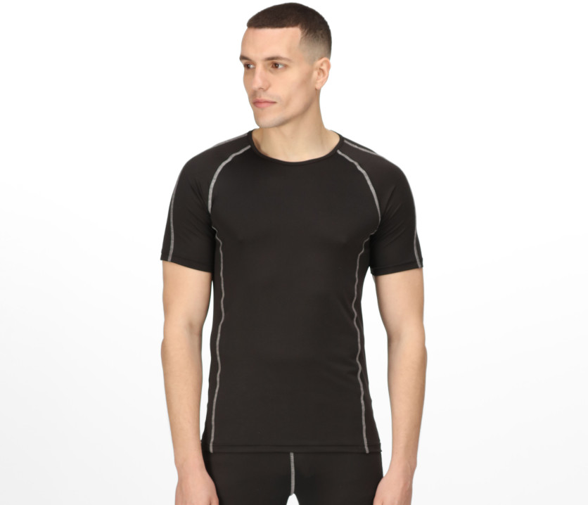 Hergestellt aus recyceltem Polyester. Gute Fähigkeit zum Feuchtigkeitstransport. Raglanärmel. Paspeln in Kontrastfarbe. Aus dehnbarem Stoff gefertigt.