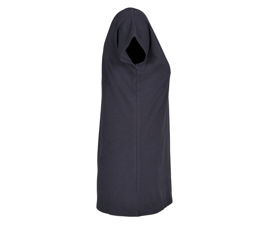 Lockere Passform. Breiter Halsausschnitt, der sich über eine Schulter ausdehnen kann.