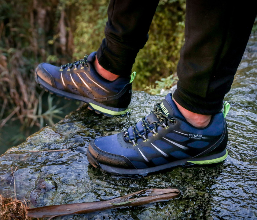 - Außensohle aus Polyurethan und Gummi mit doppelter Dichte. Obermaterial aus Softshell mit Verstärkungen im Zehen- und Fersenbereich. Wasserdichtes Futter.