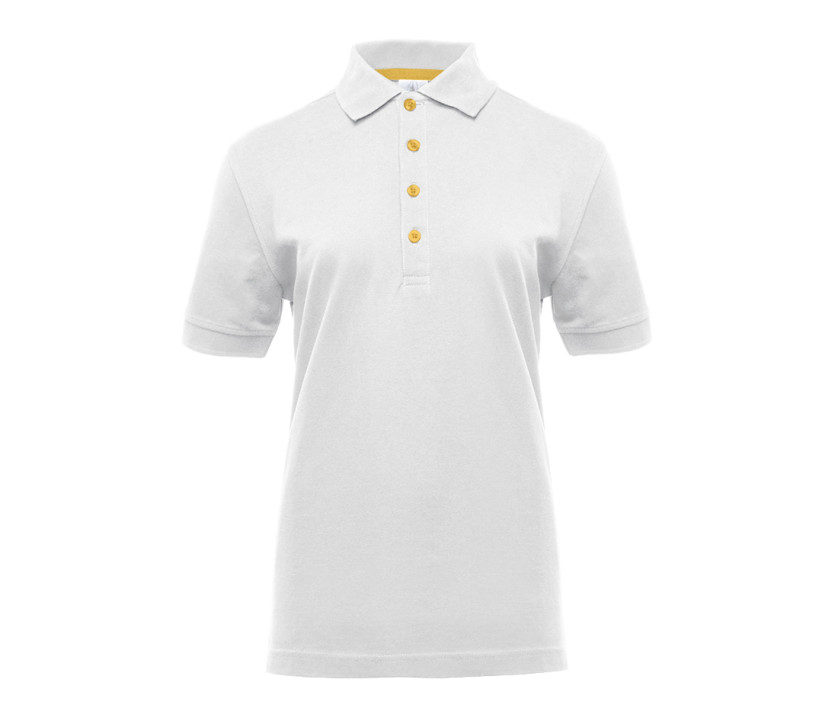 Damen-Poloshirt mit Kontrastknöpfen - Nackenband in Kontrastfarbe. Gerippte Manschetten und Kragen. 4 Knöpfe.