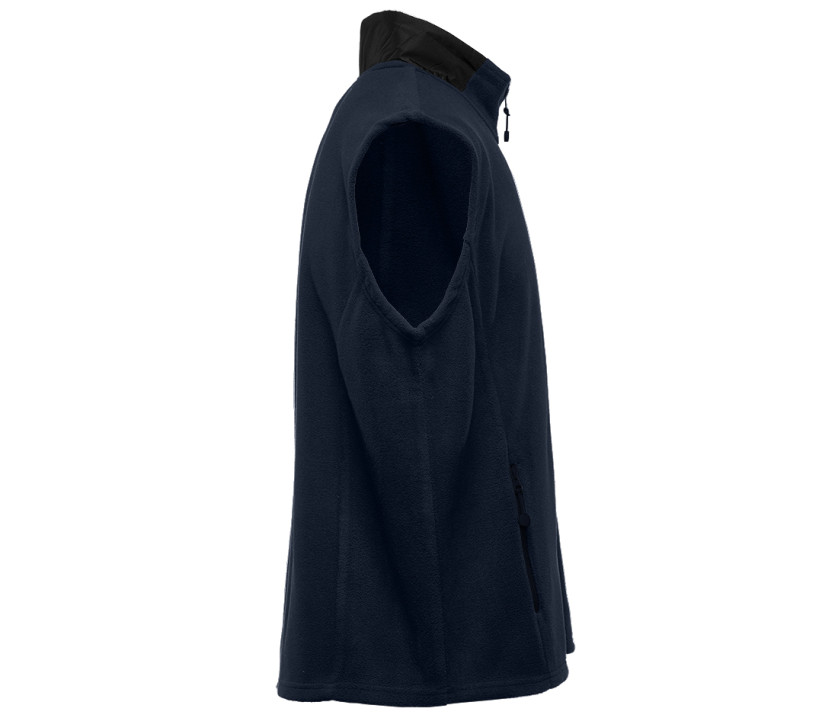Kontrastierender Reißverschluss. Fischgrätband am Hals. Reißverschlusstaschen mit Kunststoffpuller.