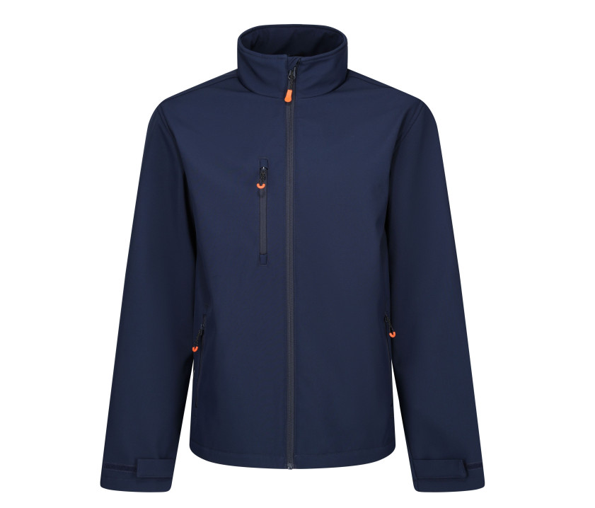 Wasserdichtes, gewebtes Softshell XPT-Gewebe mit warmer Rückseite, hergestellt aus 30 % recycelten Materialien und mit DWR-Ausrüstung.