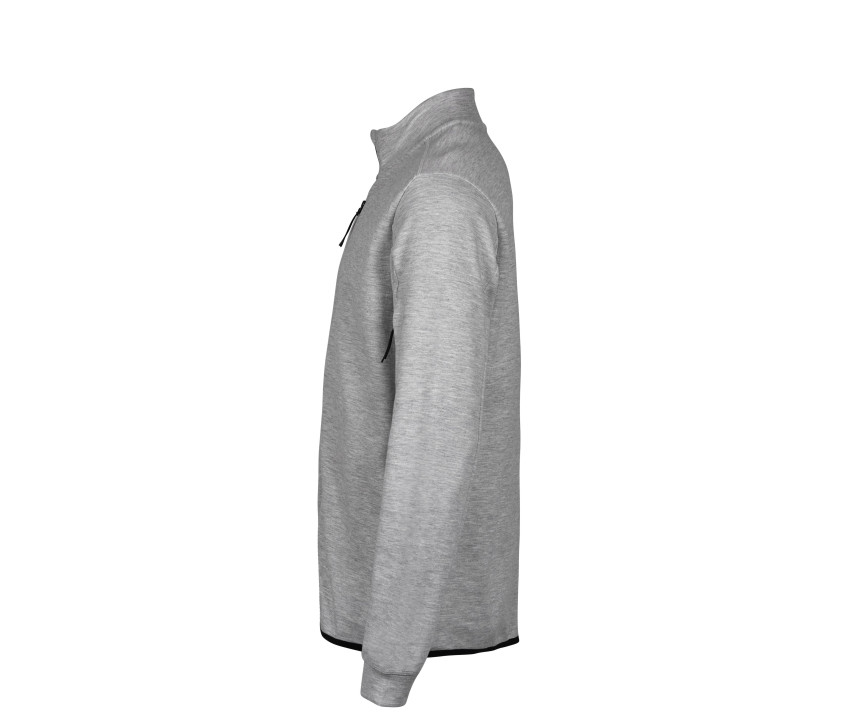 Großer Reißverschluss SBS. 2 offene Taschen auf der Vorderseite. Reißverschlusstasche am Ärmel. Ärmelbündchen aus gleichem Stoff. Elastischer Bund.