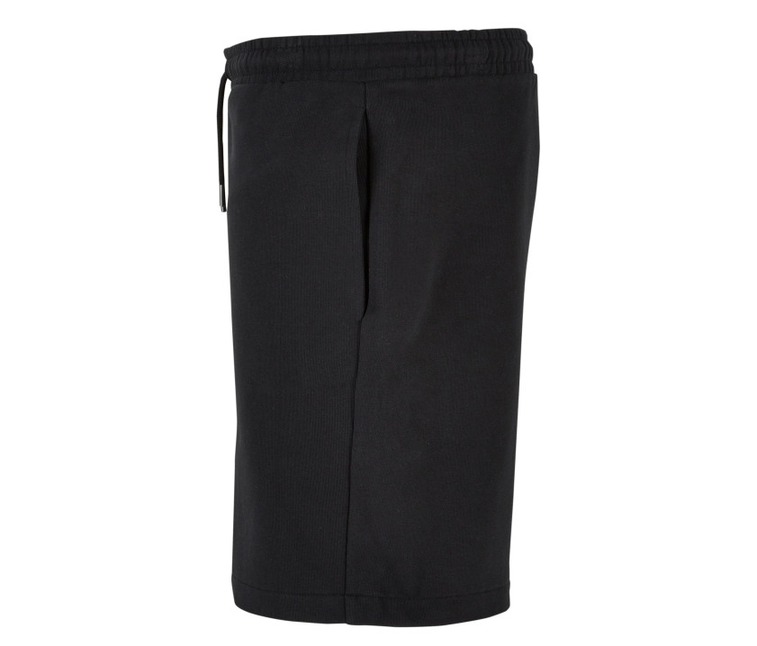 Elastischer Bund mit Kordelzug. 2 seitliche Taschen.