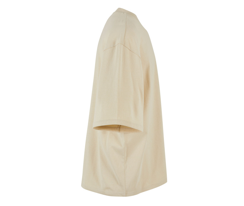 Rundhalsausschnitt. Oversized-Passform. Halblange Ärmel. Überschnittene Schultern. Neutrales Größenetikett ohne Branding.