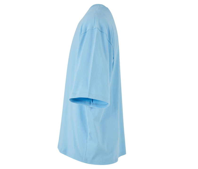 Rundhalsausschnitt. Oversized-Passform. Halblange Ärmel. Überschnittene Schultern. Neutrales Größenetikett ohne Branding.
