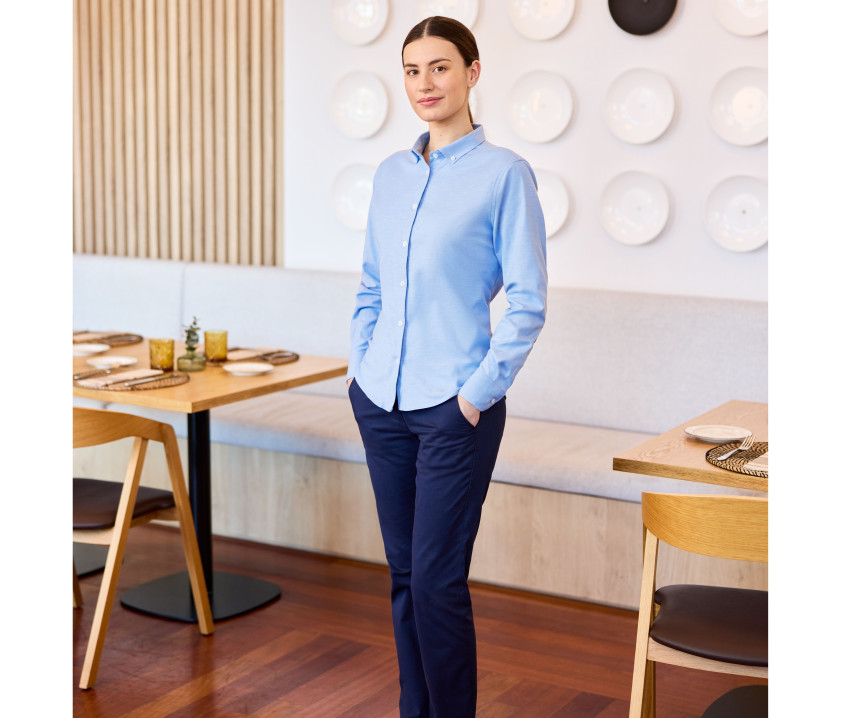 Frontreißverschluss mit Knopf. Doppelte Sicherheitsnähte. Abnäher hinten. Weicher Griff. 5 Taschen: 2 Seitentaschen, 1 Uhrentasche, 2 Gesäßtaschen mit Knopf.
