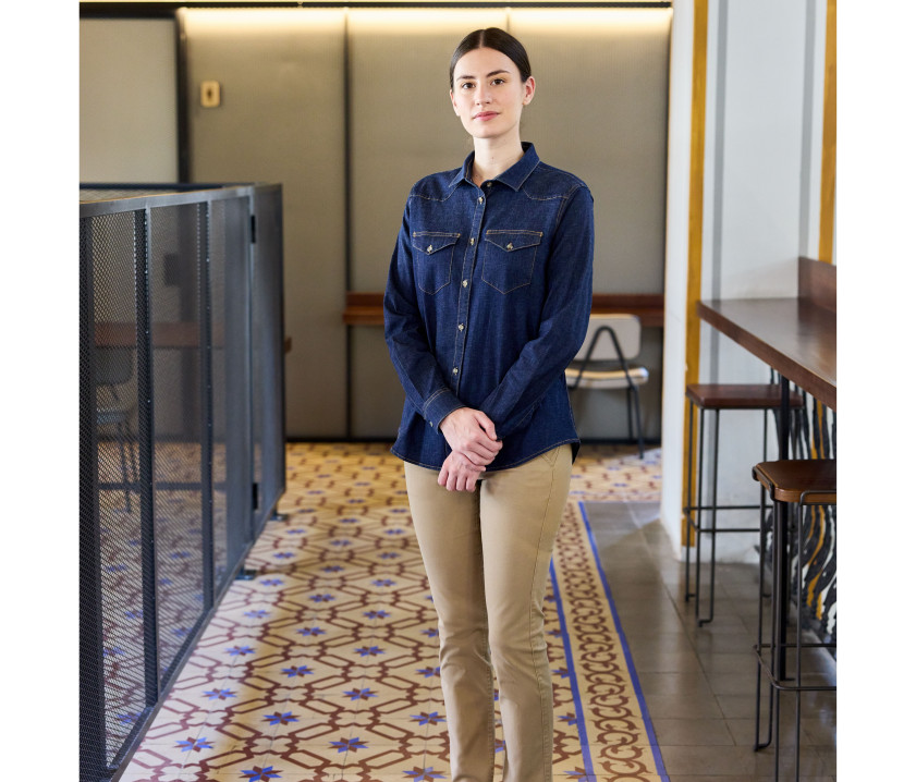 - Zentraler Reißverschluss mit Knopf. Klemmen auf der Rückseite. 5 Taschen: 2 Seitentaschen, 1 Uhrentasche und 2 Gesäßtaschen mit Knopf.
